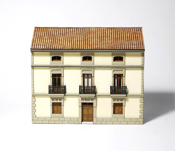 Calle Mayor es un edificio adosado, de una fachada, en escala N. Está completamente montado y pintado. Fabricado con cartón compacto resistente.
